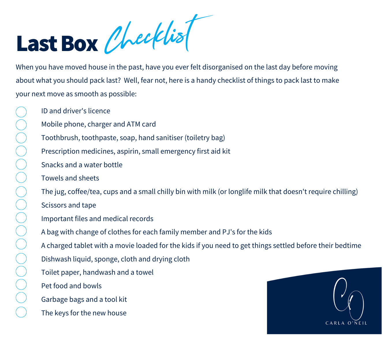 Here’s a handy checklist for you to help take the stress out of moving! Happy moving day.